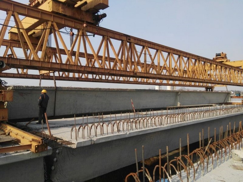12月12日下午, 在160吨位架桥机黄色巨臂的稳定操作下,35米箱梁缓缓落定,备受瞩目的238省道扬中西来B标幸福大桥顺利完成了最后一片预制箱梁架设任务。现场鞭炮齐鸣,全桥70片预制梁全部如期架设完成,项目建设者用自己的辛劳工作成果为十九大献礼。