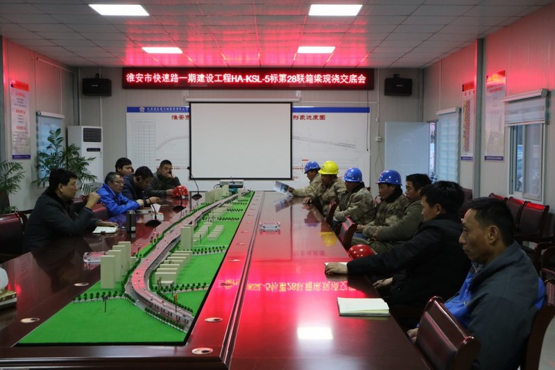 元旦节,项目部认真组织箱梁现浇交底会议,为明天大体积浇筑做好准备工作