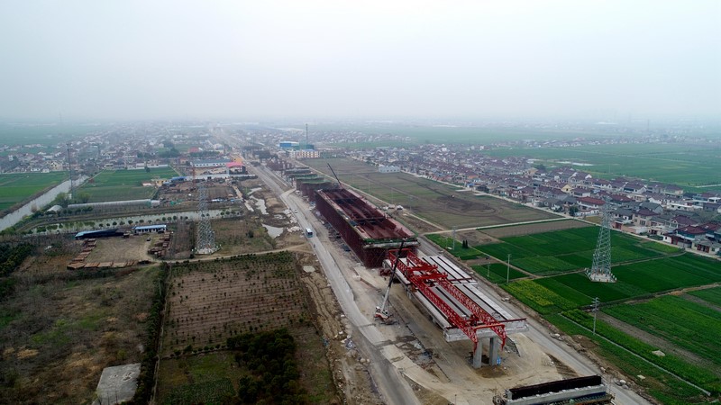 第一片箱梁成功架设,为实现328国道快速化改造工程全线通车打下坚实的基础也极大鼓舞了项目全体人员的士气。(陈鹏)