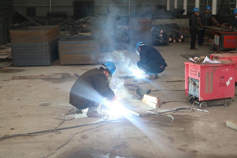 此次电焊工现场实操考核由总监4标组织,5标项目部总工室、质检科、试验室协同实施。考核场地设在5标标准化建设的钢筋大棚加工场,监理人员、项目部总工室、质检科、试验室相关专业人员对平焊及立焊的操作技能进行考核打分。参加考试的焊工师傅们配戴防护手套、护目镜, 手持焊枪,专心致志地在钢筋上分别进行平焊及立焊。焊接完成后,考核人员根据相关规范对焊缝的外观质量进行验收,并由试验室对焊接件进行拉伸试验,最终判定焊工的实操技能。