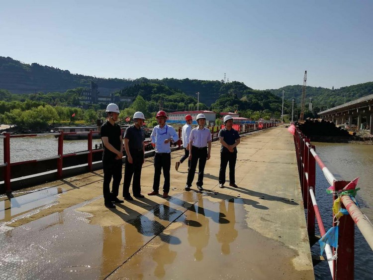 6月13日上午,盱眙县政府常务副县长林波一行来到淮河大桥施工现场,对大桥施工的质量、安全、进度进行了检查与指导,交通局副局长王家勤陪同检查。