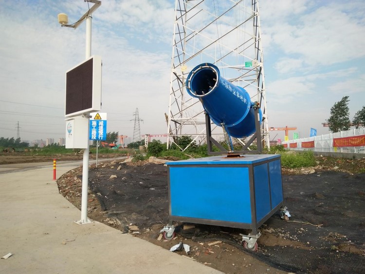 三是新型设备,智能防尘。在项目部重点施工区域安装扬州噪音检测系统,该系统实时监控显示PM2.5/PM10数据,一旦监控数据显示异常,将通过联动装置发射信号,自动启动泡雾机进行喷雾抑尘。