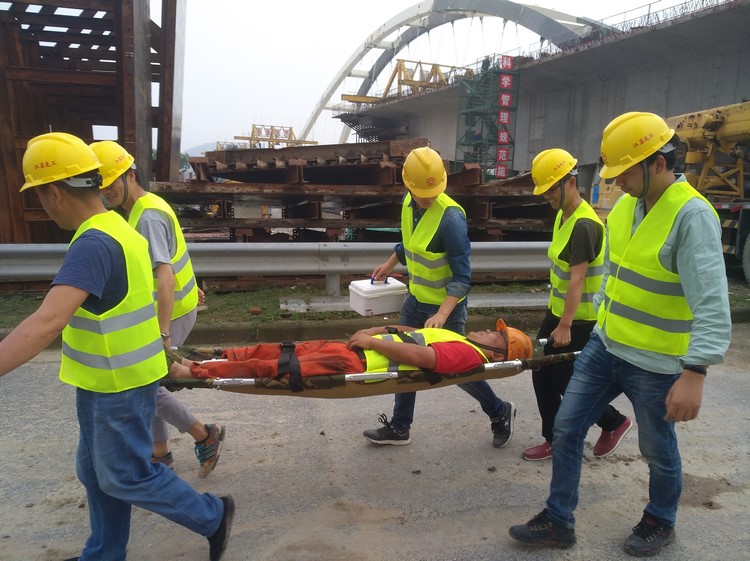 项目部医疗组在第一时间根据工人的受伤情况进行简单的救护措施。警戒联络组在施工现场临时拉起了警戒线,后勤保障组为救援的道路做好了疏通和保障措施,事故发生15分钟后救护车赶到顺利将工人接到医院进行后续的观察治疗。