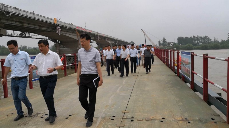 7月2日下午,盱眙县朱海波县长在县发改委、县农委、县交通局等有关部门的陪同下莅临淮河大桥施工现场检查指导工作,开通公司魏星副总经理现场陪同。