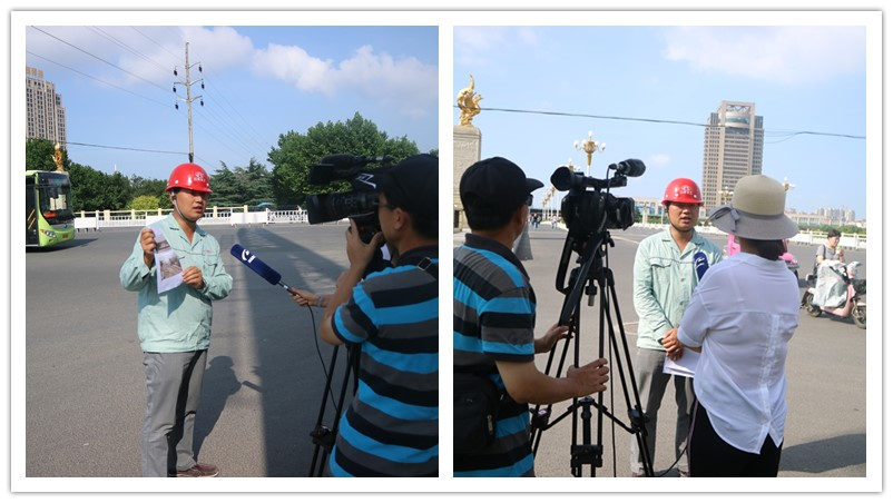 为纪念改革开放40年,彰显交通发展取得的新成果,7月11日下午,淮安市有线电视台今日观察栏目组记者,不顾炎炎烈日,走进开通公司已建项目淮海路古淮河桥及水门桥,热切关注淮安市区淮海路这条“黄金通道”上的这两座桥梁,再次深度了解它们几度改建的历程,历次建设难度、意义等。开通公司古淮河桥及水门桥项目经理吴春勇现场一一接受记者采访,并耐心热情地回答了记者的所有问题,吴经理再次为公司在淮安大交通建设中所作出的贡献及取得的成绩倾情介绍,媒体对此次采访深表满意和感谢。(刘建飞)