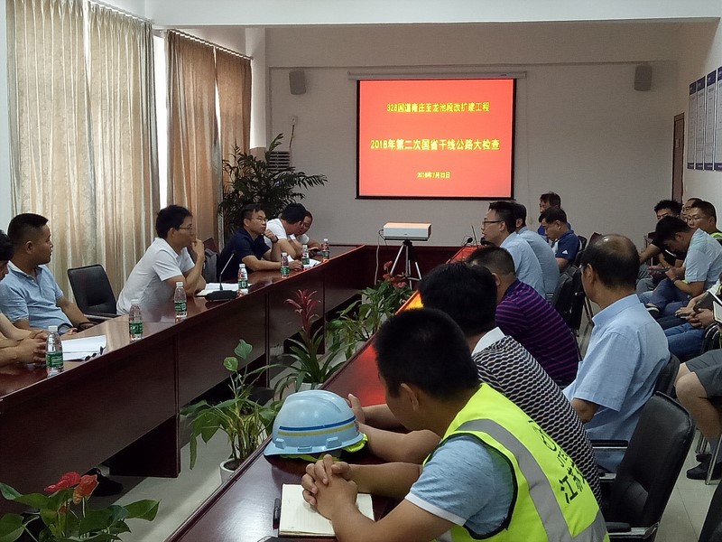 7月23日上午,省交通运输厅公路局委托苏交科集团股份有限公司对328国道雍庄至龙池段改扩建工程建设项目进行2018年干线公路第二次综合大检查。在听取了相关汇报后,检查组先后对参建单位进行了分组:内页组、外业组(分强度检测、钢保检测、结构物尺寸检测、沥青、水稳结构层厚度、现场文明施工)、原材组;最后,每家施工单位和监理单位安排相关人员对各自的检查组做好服务工作。外业检查路线由北向南,即从龙池互通一直到马汊河大桥,内业检查顺序为16标—15标—17标,南京分公司SG-17标是最后一站。