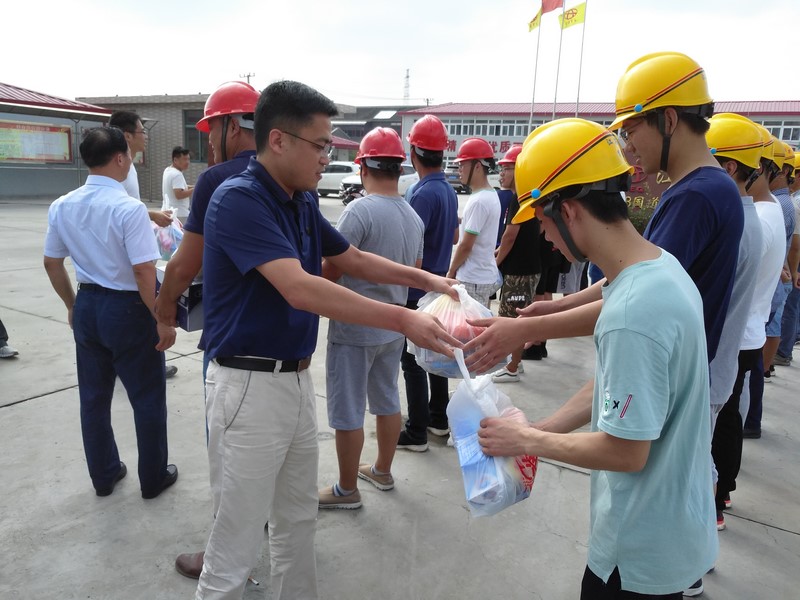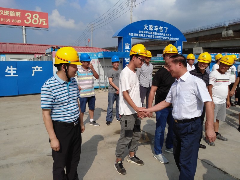 李局长在现场叮嘱广大建设人员,在抢抓工期的同时,一定要注意自身的身体健康,要把身体放在第一位。同时要求项目部合理调整作息时间,统筹兼顾做好夏季高温季节的施工安排工作,错开一天中的高温时间,现场要放置茶水桶,方便工人喝水。