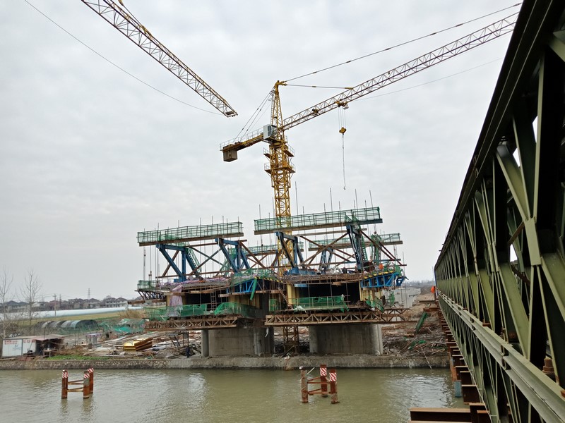 连日来,乌巾荡特大桥项目部根据现场施工现状,重新制定施工计划,倒排施工进度。截止目前,主桥下部结构施工已经全部完成,引桥人行道梁完成1440延米,主桥悬浇箱梁已经完成北岸右幅2#块件的支架搭设,为主桥的顺利浇筑完成做好各项准备工作。