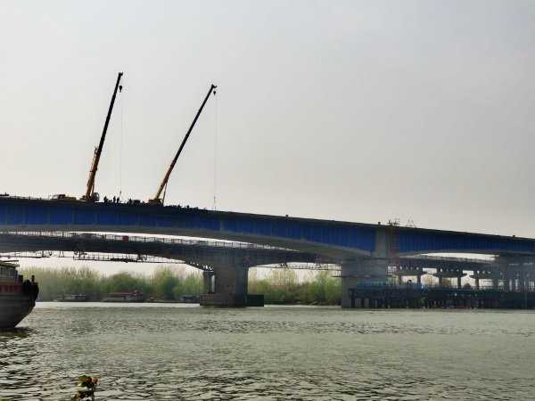 4月8日下午,随着最后一片预制箱梁的成功安装,淮河大桥右半幅主桥全面贯通,距离正式通车又近了一步。
