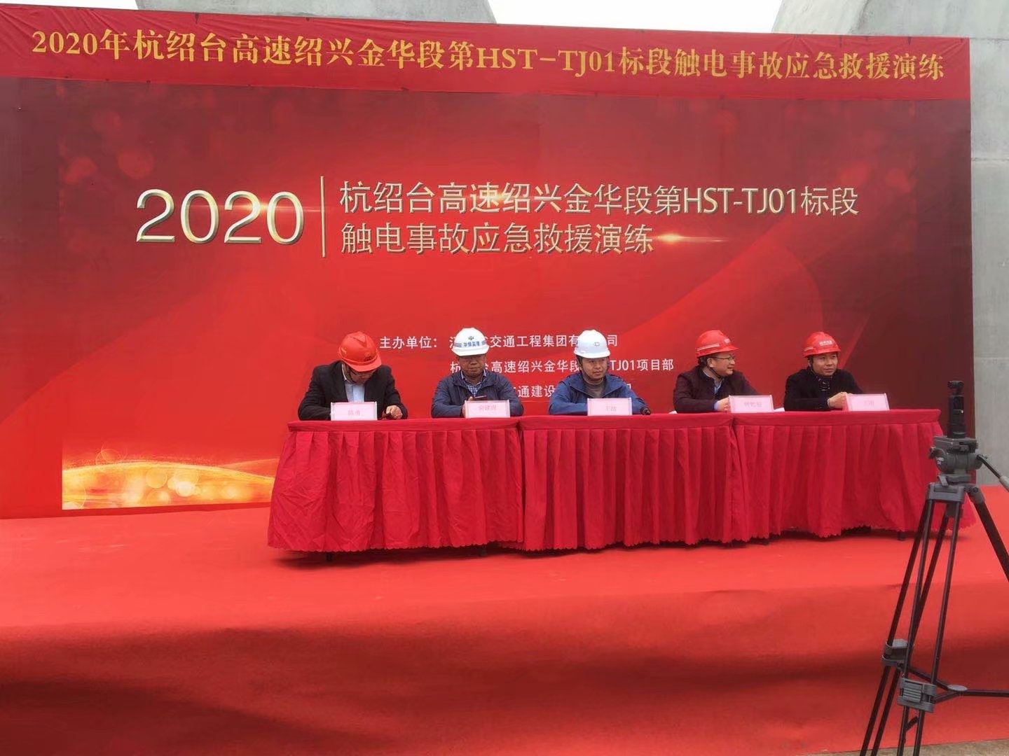 为进一步提高施工人员用电触电突发事故的应急处理能力,4月21日,杭绍台1标在杭绍台高速绍兴金华段第1标段三工区耶溪路9-33号墩位开展了2020年触电事故应急救援演练。