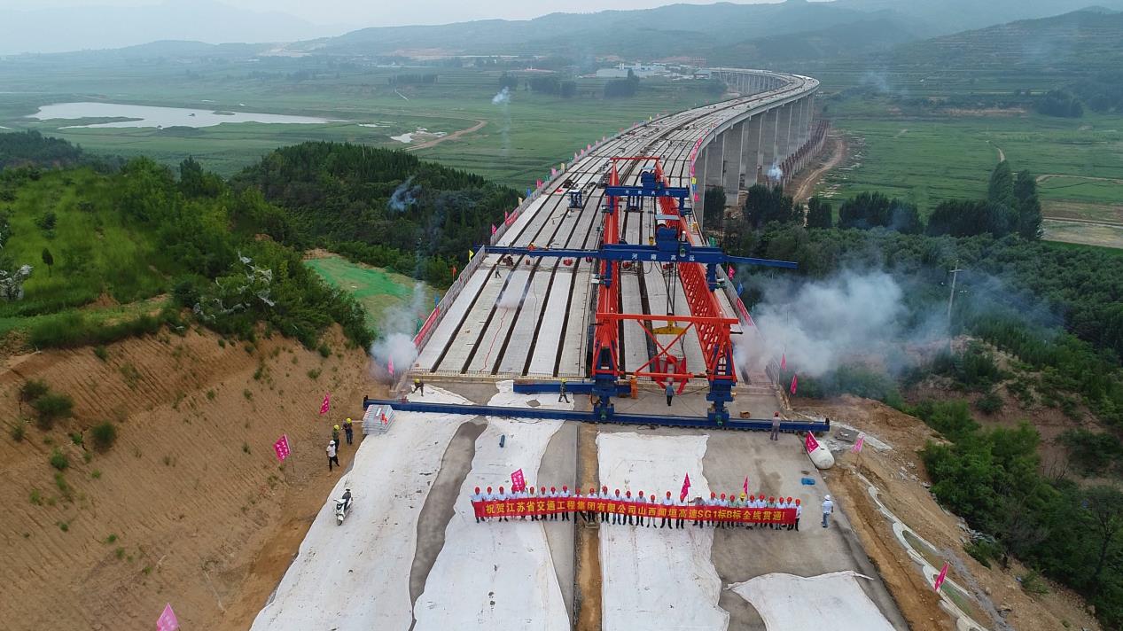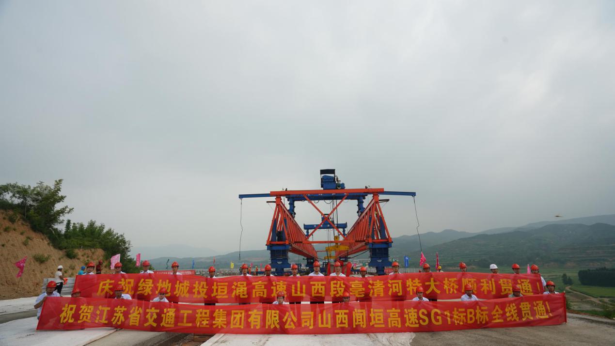 7月31日下午,闻垣高速公路古城联络线SG1标B标亳清河特大桥最后一片30米T梁身披大红花,在喜庆的鞭炮声中稳稳架设完毕,至此SG1标B段17.3公里成功实现全线贯通。