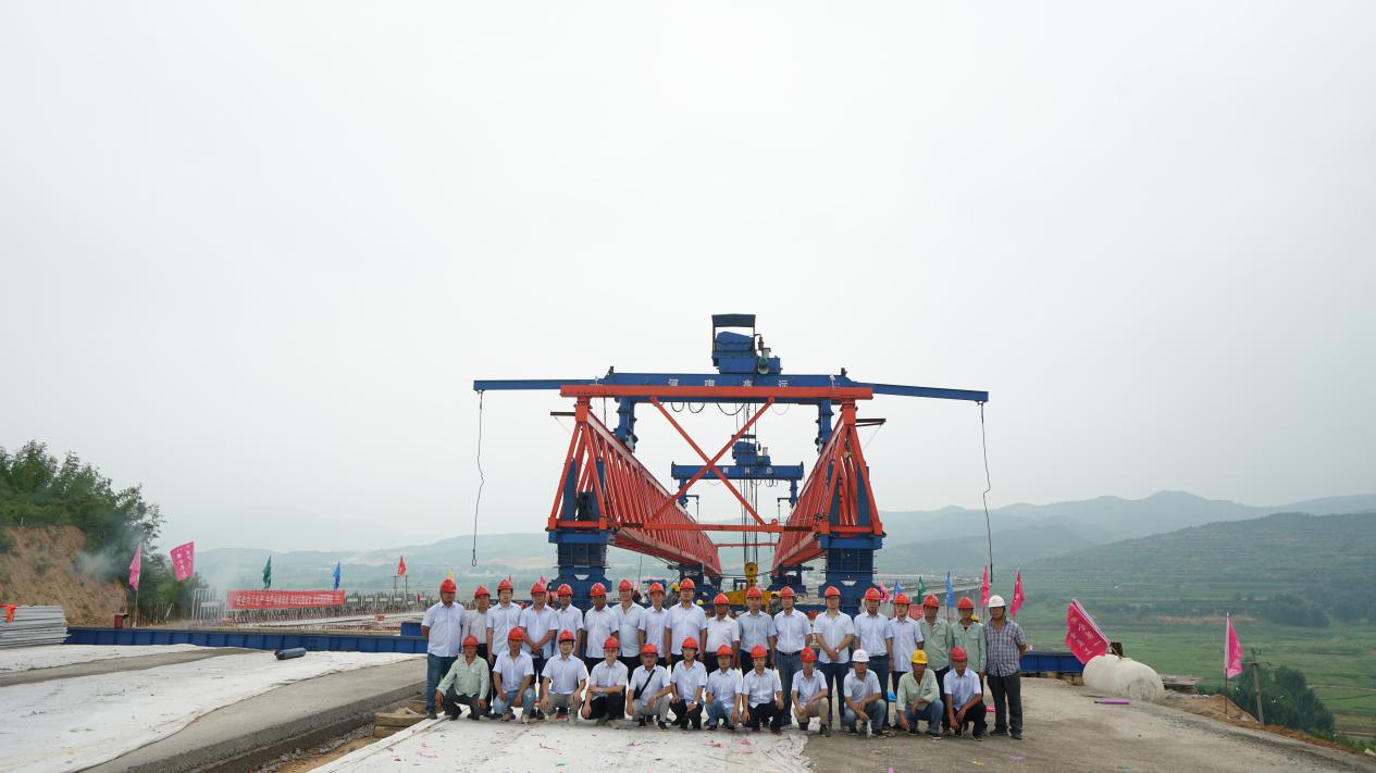 安装现场彩旗飘扬,气氛热烈,架桥工人挥汗如雨,奋战一线。亳清河特大桥T梁的安装结束标志着所有桥梁架设工作全部安全、顺利完成,为项目年底通车奠定了坚实的基础。