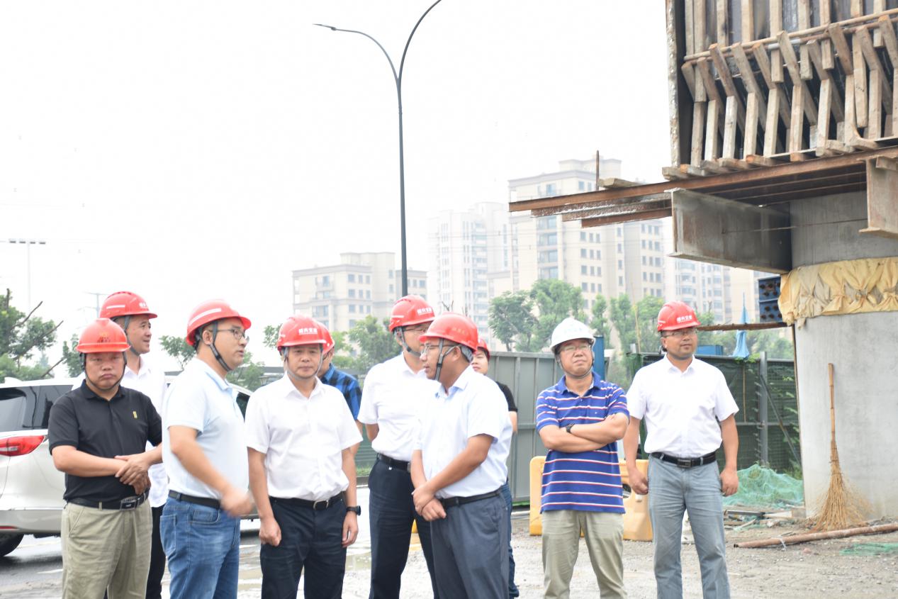 在施工现场,调研组一行详细检查了几处重要施工节点,听取了项目负责人陈勇关于杭绍台1标项目的基本情况、施工进度以及后期规划的情况汇报,对项目工程的总体进展及施工困难进行了全面了解。