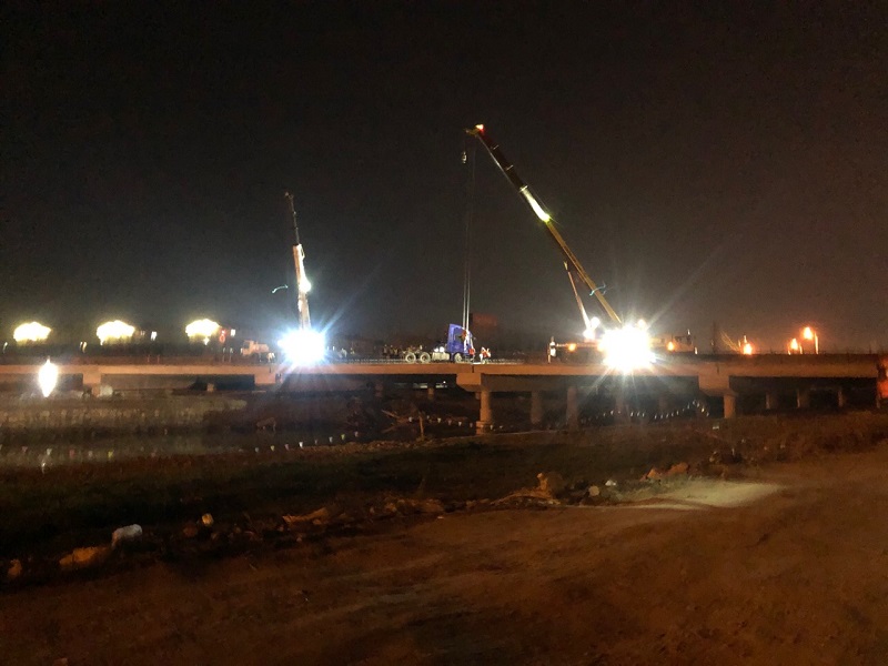 安装过程中,项目部精心组织、安全作业,克服了板梁长距离运输、途经205国道车流量大及临近春节社会车辆行人多等诸多困难,抢时争效、加班加点,一线建设者们充分发扬开路人精神,中午现场就餐、保障高效迅速,以计划为目标、以品质为追求,与时间赛跑,确保了节前安装计划如期完成。