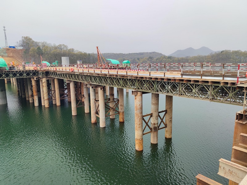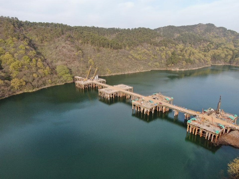 日前,许信8标臻头河大桥栈桥、平台施工已全部完成,永久钢护筒埋设也已完成总量的88%。本次臻头河大桥施工的首件是左幅7-1基桩,采用冲击钻成孔施工工艺,桩长53m,桩径2.5m,钢筋笼重达36.72吨,混凝土306.4m³,历经6小时灌注完毕。