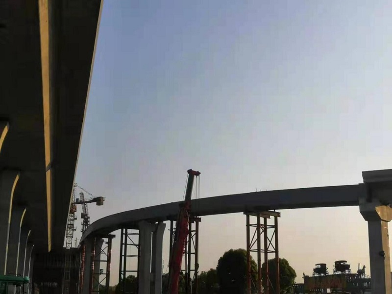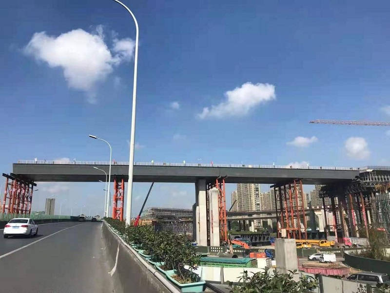 据介绍,03省道东复线高架南延工程第2标段全线有钢箱梁14联,5联跨彩虹大道, 5联跨萧绍河,1联跨杭州地铁5号线,1联下穿主线高架与彩虹大道并列,剩余2联位在浙江(中国)花木城东区。施工场地处于三地交界处,地形复杂、施工场地有限。为此,项目部多次组织召开钢箱梁建设专题会议,对技术方案、施工组织、应急措施进行了精心计划与周密部署。并在施工过程中,通过现场督导指挥,封闭施工、安排专人对来往车辆进行导流等多种措施,克服了诸多困难,确保了钢箱梁架设任务顺利完成。