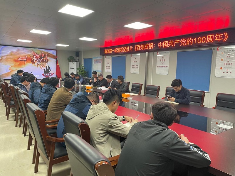 4月15日,青洋路一标项目部组织党员以及部分管理人员,观看纪录片《百炼成钢:中国共产党的100周年》,加强党史学习教育。