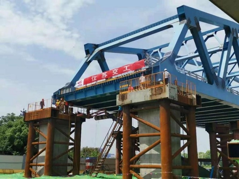 6月4日,江陵路2标南辅道钢桁架桥正式完成落梁。