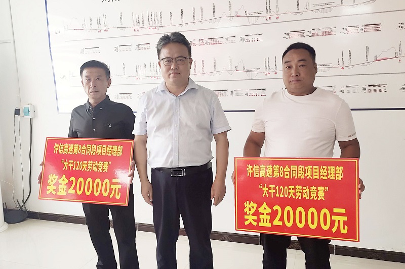 作为河南省2022年高速公路建设大目标的重点内容之一,年内建成通车是许信8标面临的艰巨任务。如何优质、高效、安全地推进项目建设,按照上级部署打好这场攻坚战,许信8标全体建设者积极行动,继前一阶段开展的“大干120天”劳动竞赛后,又激情满怀地拉开了“大干150天”劳动竞赛活动序幕。