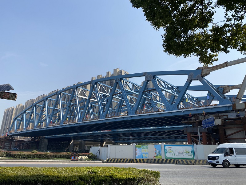 苏州江陵路2标北辅道钢桁架桥顺利完成顶推