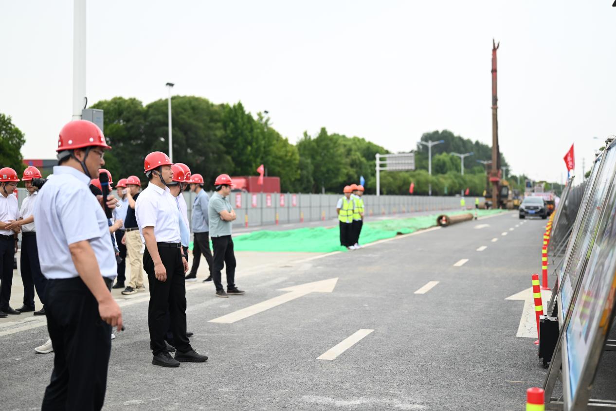 薛晔一行实地察看了项目开工进展,听取了工程前期准备工作、重大施工节点计划等相关工作汇报,对项目全体参建人员不畏高温酷暑、坚守岗位奋战拼搏的精神表示赞扬和感谢。薛晔表示,交通是经济社会高质量发展的重要支撑,腾龙大道智慧快速路二期工程在构筑常州“中环”格局,加强常州南北联系方面有着重要意义,要切实强化大局意识、拼抢意识、服务意识,紧盯时间节点,鼓足干劲、大干快上,全力推动工程建设提速增效。他要求,要坚决做好防暑降温工作,以保障施工一线人员生命安全为红线;要牢牢坚守质量底线,恪守质量为先、质量第一的建设信条;要持续跟进工程进度,合理安排施工计划,确保在工期内完成交付。