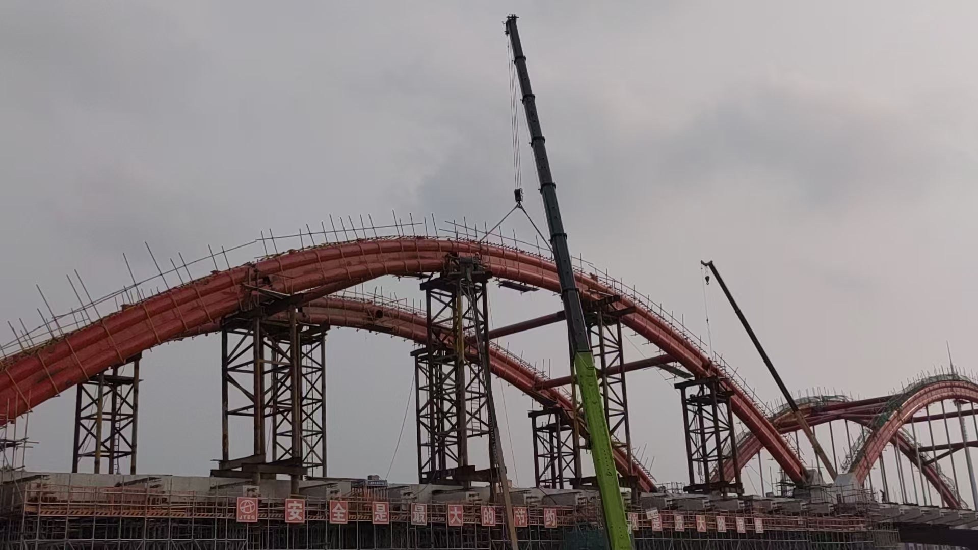 8月4日下午,盐城市响水双园大桥建设迎来重大节点——随着最后一个钢管拱肋合龙节段精准安装就位,大桥东侧系杆拱桥钢结构施工宣告圆满完成。这标志着横跨灌河的双园大桥成功实现东西双拱贯通,为这座重要民生桥梁的全线通车奠定了坚实基础。