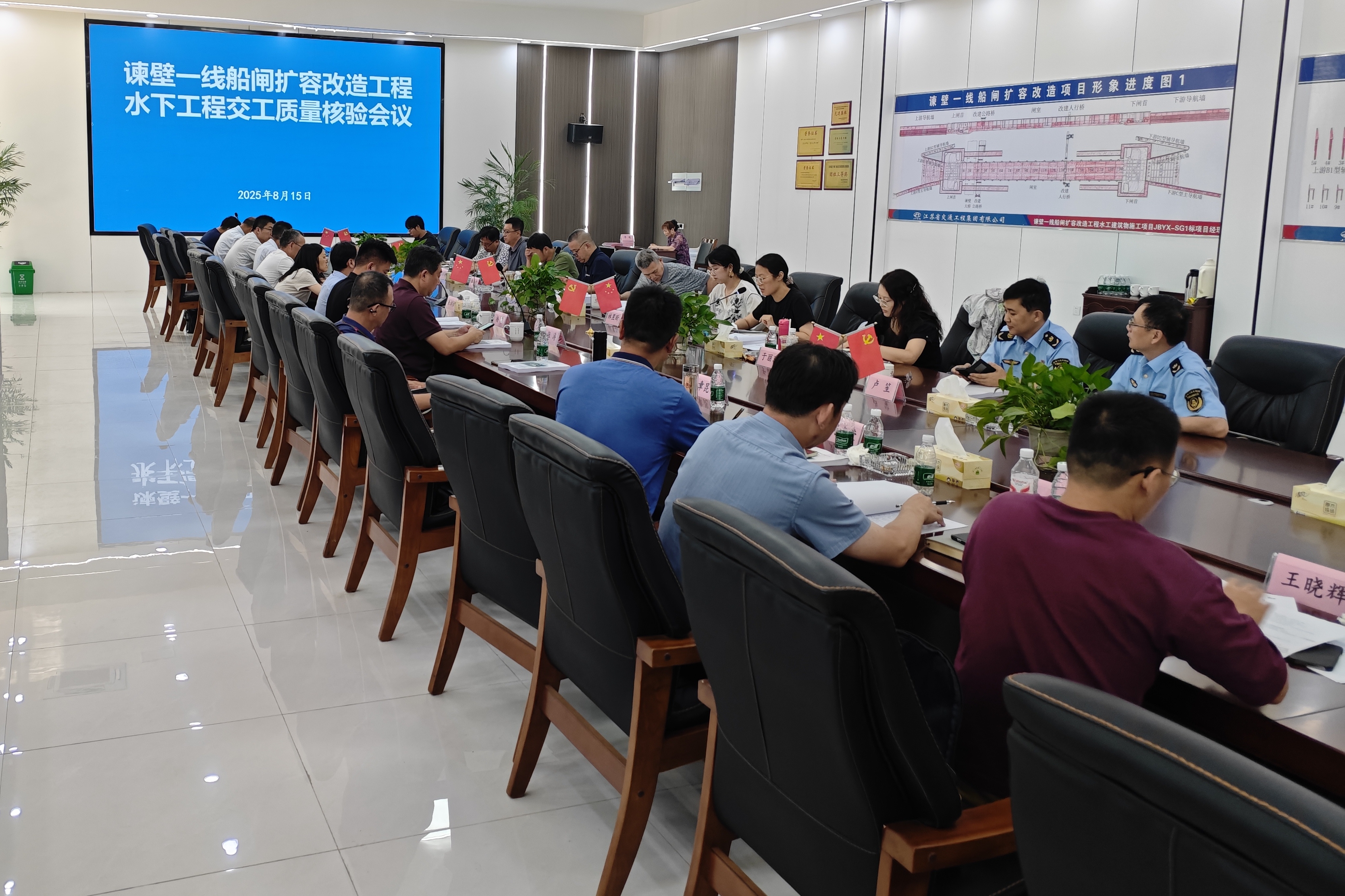 在全体参建人员的奋力拼搏下,由集团公司承建的江苏省重点水运工程——谏壁一线船闸扩容改造工程迎来冲刺通航的关键阶段。继8月15日项目水下工程高质量通过交工验收后,8月17日,工程再度取得突破性进展,充水作业顺利完成。两大核心节点的有序攻克,为船闸按计划在9月底实现试运行奠定了坚实基石。