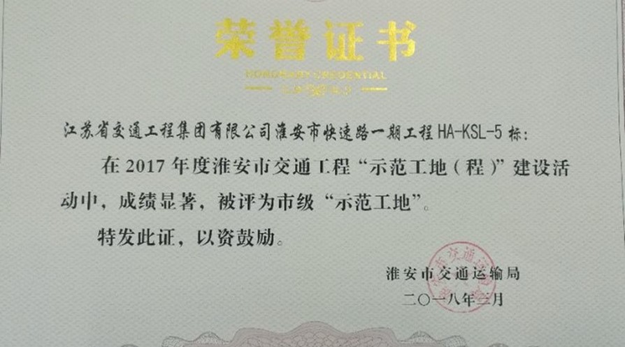 • 淮安市快速路5标荣获“示范工地”殊荣