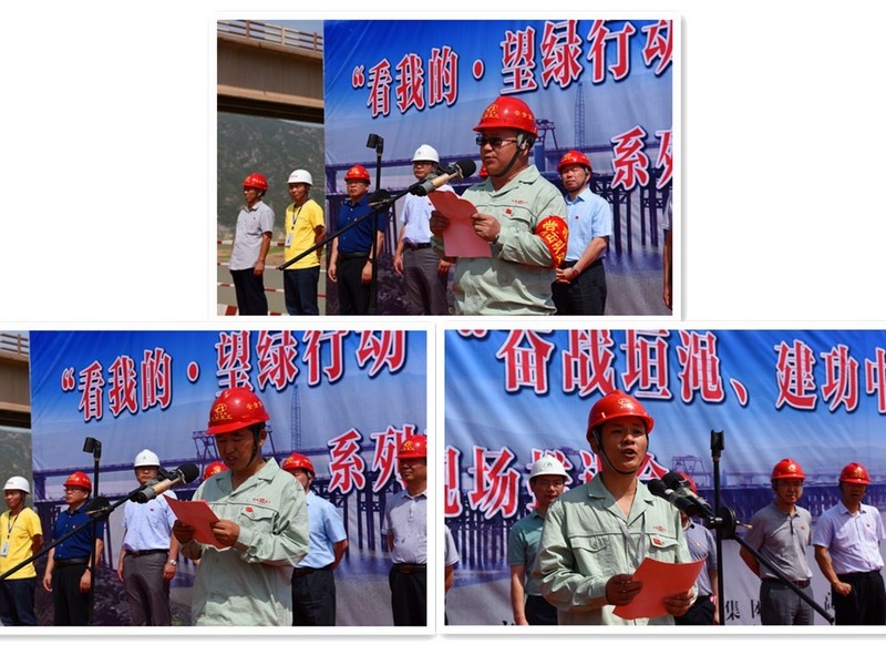推进会上,垣渑高速公路项目党工委书记樊明再作为党员先锋工程代表,在推进会上围绕“看我的·望绿行动”主题作了倡议表态发言,黄河特大桥项目经理高波以及TJ2标项目经理梁强代表参建项目部作了表态发言。(何晓璇 徐金亮 图/文)