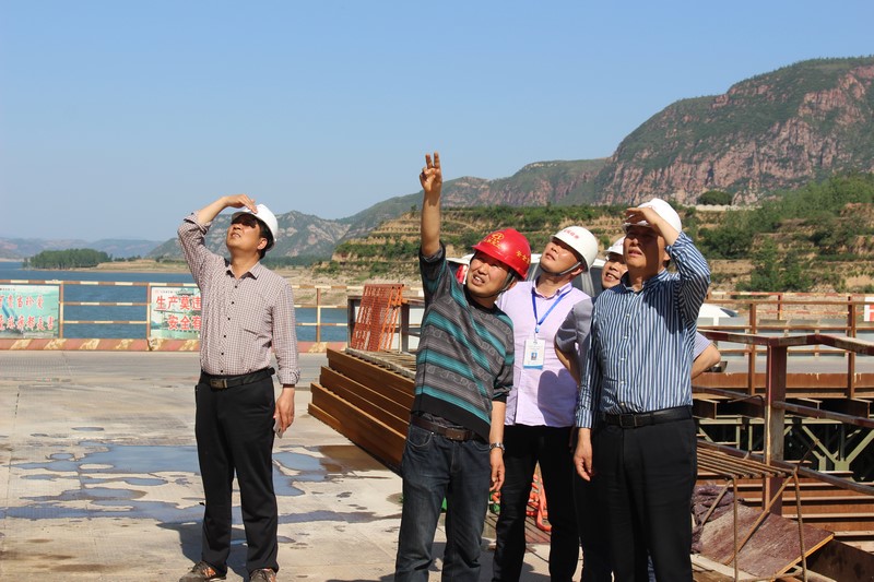 5月2日下午,河南省质监站副站长徐耀彩一行六人,在垣渑高速公路有限公司副指挥长李明、黄河特大桥项目经理高波以及监理组组长高聚玉的陪同下莅临黄河特大桥项目施工现场对工程质量安全进行了监督检查,在黄河特大桥观景台上项目经理高波向检查组汇报了黄河特大桥的工程概况以及项目目前工程开展情况,检查组听取汇报后步行至钢栈桥13#水上平台仔细查看正在建设中的主桥立柱、系梁施工。并询问现场的质量控制和安全控制以及施工工艺,项目经理向检查组进行了一一汇报。