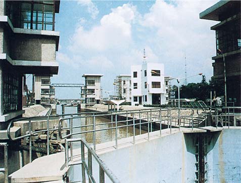 江阴复线船闸,闸室16×98×2.5米,地下连续墙结构,1985年7月开工,1987年9月竣工,质量优良,获省科技进步三等奖。